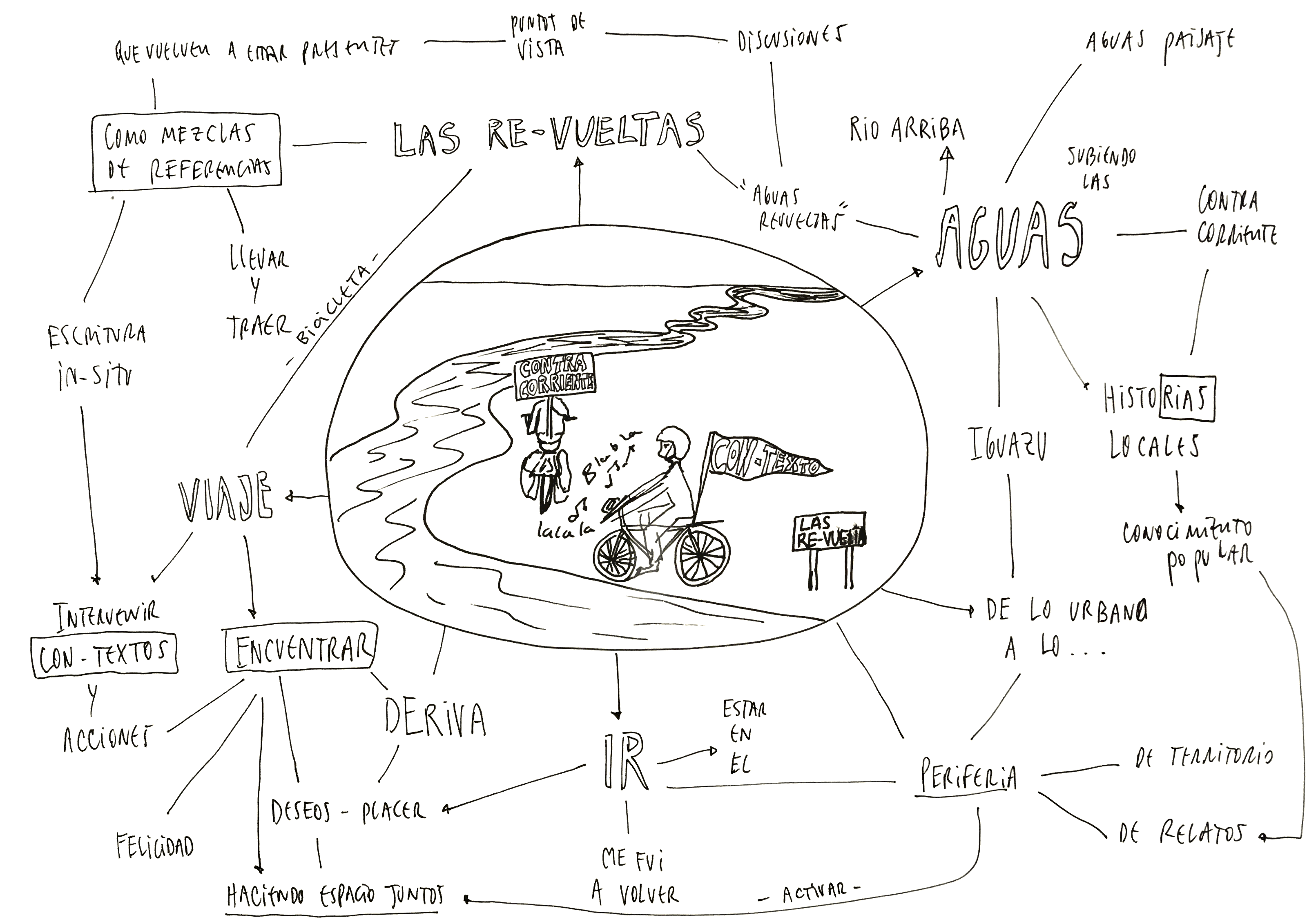 Nuestro proceso sera predisponernos reactivos al contexto. Nos basaremos en la observación antropológica, para tratar de identificar formas de organización de un lugar pasajero. Hacemos confianza en el proceso creativo andante, generando pensamiento caminando. Intentaremos producir una recolección en el camino: la relación con la gente que se encuentra, sus historias, sus relaciones con el río, que había, que hubo, que hay, que habrá… canciones, poetas urbanos. Utilizaremos la bicicleta como artefacto recolector-transporte, estructura móvil que se ira transformando durante el recorrido.